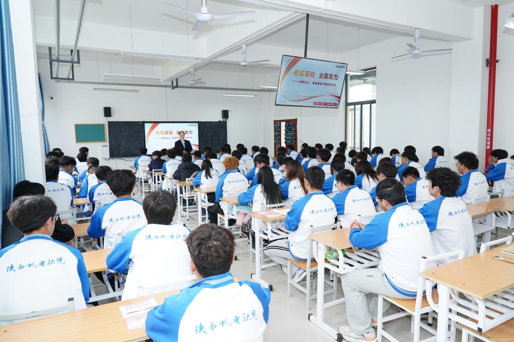4月28日下午,陕西机电职业技术学院党委书记伊逊智在博学楼213教室为25电…