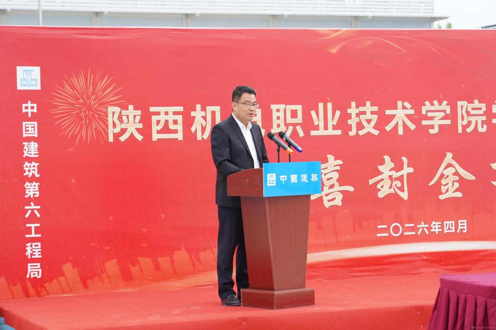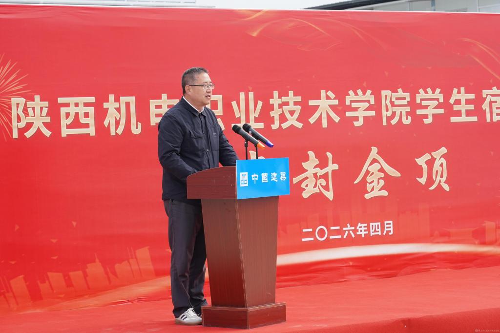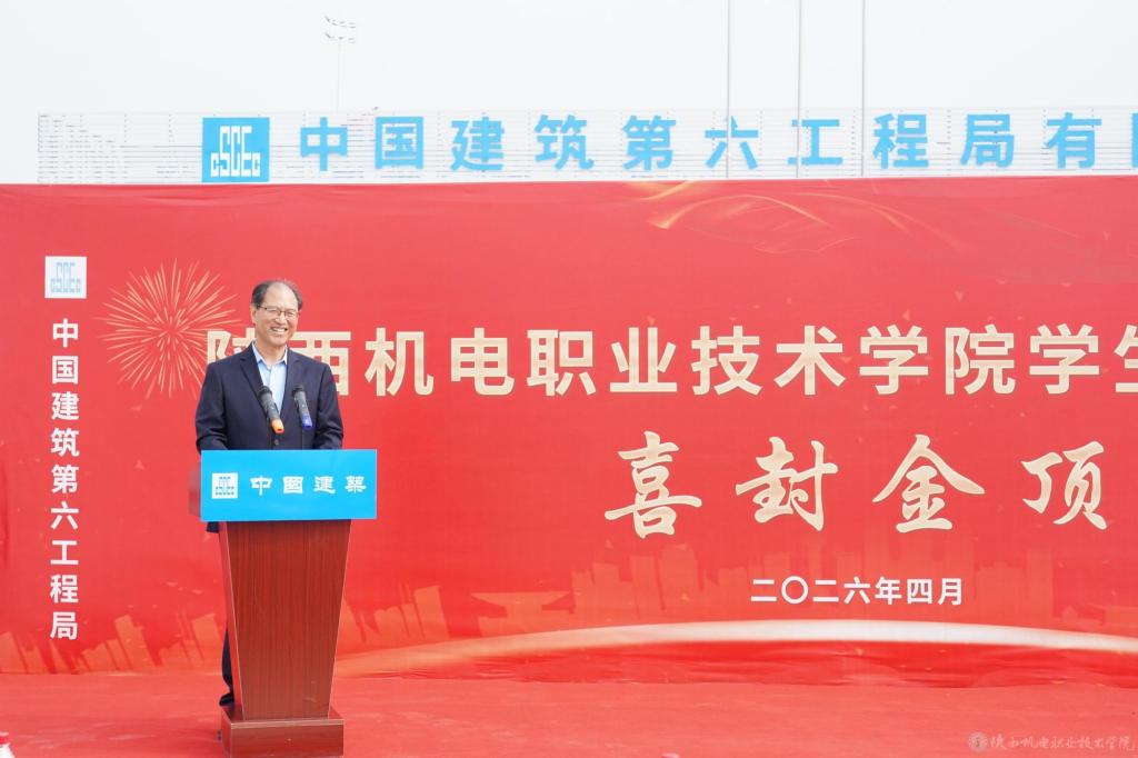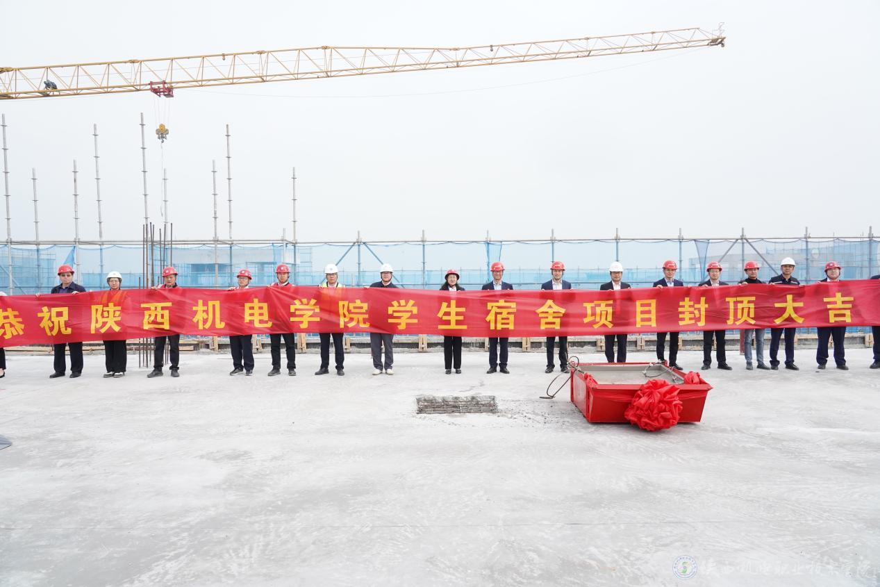 侯晓方宣布:“陕西机电职业技术学院学生宿舍项目主体结构正式封顶!
