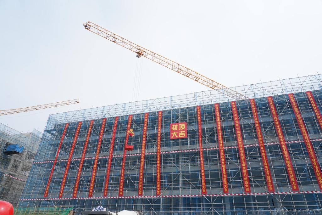 伊逊智代表学校党委和全体师生员工,向日夜奋战在一线的全体建设者、全程履职尽责的各参建单位致以诚挚感谢。他指出,项目开工以来,各单位统筹质量、安全、进度、投资四大核心,迎难而上、抢抓工期,以零安全事故、零质量瑕疵的过硬成果如期完成封顶。他强调,主体封顶是项目攻坚冲刺的新起点,后续建设要严守质量生命线、筑牢安全防护墙、紧盯交付硬节点,确保项目今年秋季开学顺利投用。